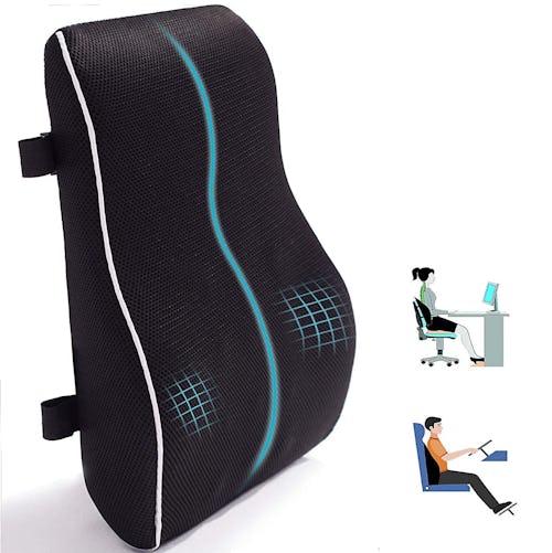 Whether you’re spending long days at your computer or headed out on a road trip, this lumbar pillow can help support your back. Made from memory foam, the ergonomic design promotes good posture and aligns your spine. Adjustable straps keep the pillow in place and the mesh cover is breathable and washable.