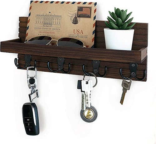 One of the telltale signs of a put-together home is one of these ultra-convenient key hanging racks by the front door. Long gone are the days of tossing your belongings on the couch only to misplace them, because this farmhouse-style doorway shelf is the ideal hub for mail and car keys alike. Made of sturdy pine wood, this rack comes with everything you'll need to install and will keep your home a little more clutter-free.