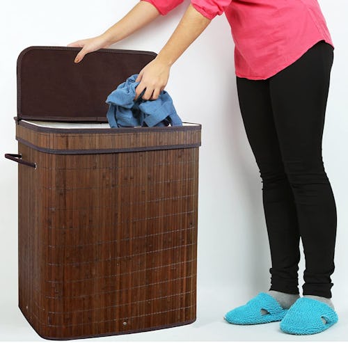 This hamper has a lot more to it than a classic bamboo construction that makes it work in any room. First of all, the washable liner inside has a divider that allows you to separate your laundry as it gets dirty. Additionally, this piece has a key feature, a lid, which hides soiled garments from view.