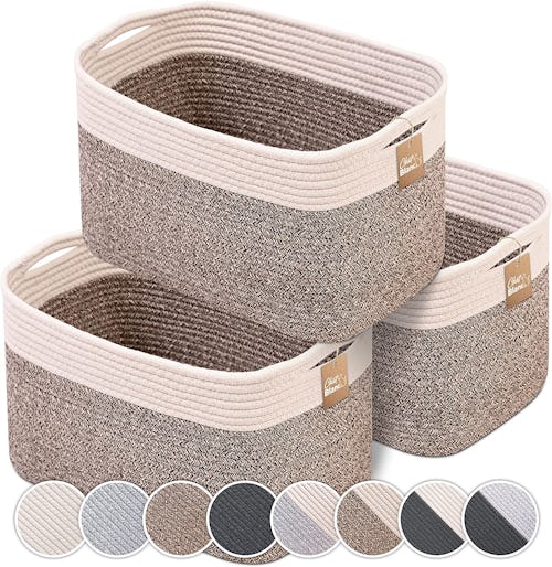 These storage baskets are neutral enough to fit right in with decor all over your home with their cotton rope design. They’re topped off with functional handles, and they’re the perfect spot to toss every single piece of clutter, including toys, shoes, blankets, towels, or even random odds and ends.