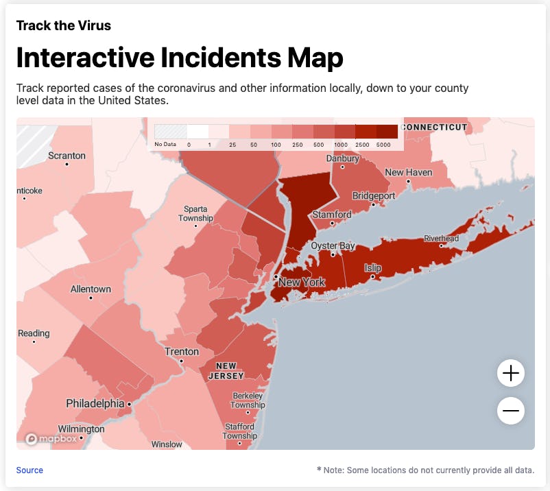Do some digging and you might notice what seem to be discrepensies, like a lack of coronavirus-related death figures for parts of New York. That's likely down the the severe lack of available testing in the state, and will probably be rectified over time as the available data improves.
