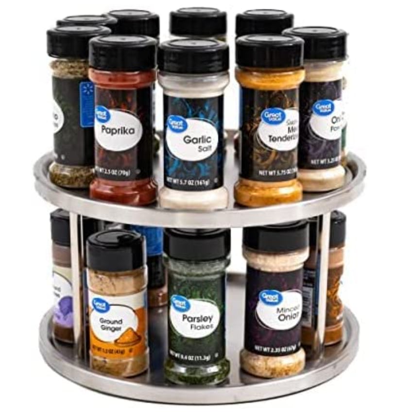 Whether you use it to hold spices in the kitchen, as a fruit-holding centerpiece on your table, or for decluttering cleaning products in your under-sink storage, this two-tier lazy Susan spice rack will get the job done. With a nonslip base and a raised rim that prevents items from falling off, it’s the perfect way to keep things organized and within easy reach.