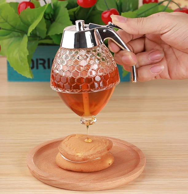 A sleek honey dispenser for no-drip pours