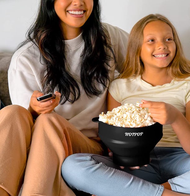 This colorful popcorn popper is made of non-breakable food-safe silicone that distributes heat safely and is easy to clean and store, collapsing to a mere 2.2 inches in height. Heat resistant so you won’t burn your hands, it’s available in over a dozen fun colors and can make and hold up to 15 cups of crisp and tasty popcorn at a time.