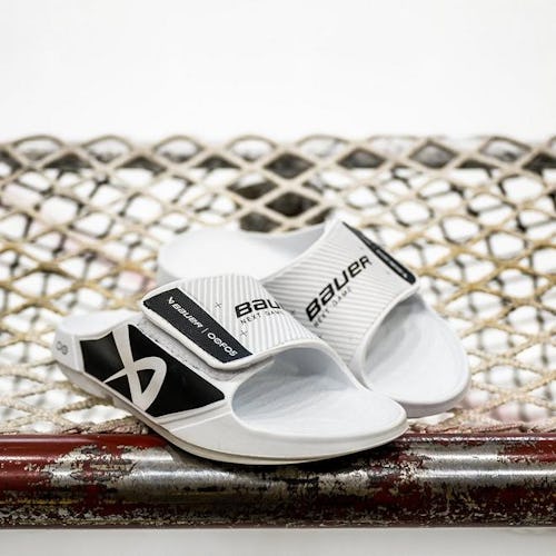 An athlete is sometimes only as good as their recovery routine. Bauer Hockey has linked with footwear brand Oofos to present the “Next Game” pack, a collection of slides that uses footwear tech to aid in recovery after a game or training.