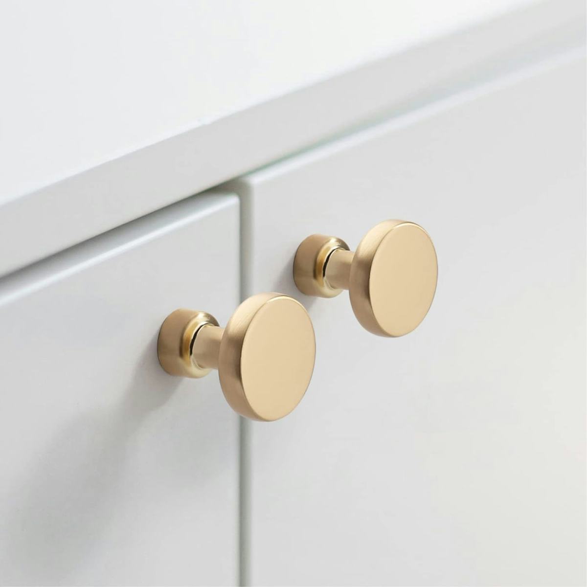 Upgrade your kitchen finishes with these circular brass knobs