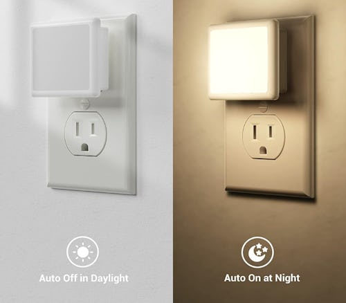 These night-lights have a modern square shape yet are small so they won’t get in the way of your second outlet. They feature a built-in sensor that allows them to turn on when it’s dark and off when it’s bright. Each one provides 3000k soft light that’s not too bright so you can get just the right amount of light for late night bathroom runs without stinging your eyes.