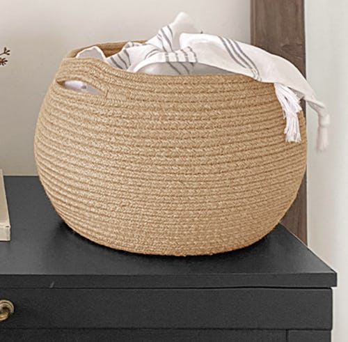 This storage basket can blend into any decor. It’s a great way to hide clutter or to tuck away items that don’t have a designated spot like toys and blankets, but it can also be used as a plant basket or laundry bin. It features built-in handles so it’s easy to carry, and it folds compactly so you can store it when it’s not in use.
