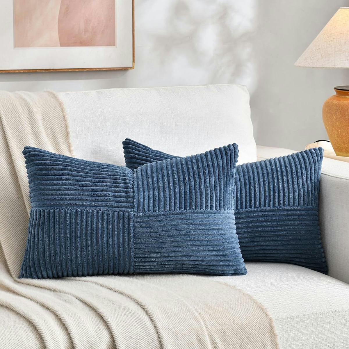 Mad Mod Home’s Robin DeCapua recommends adding contrasting but coordinating sizes and textures to create a trio of pillows on your bed. Between the lumbar shape and the corduroy texture, these pillow covers do the trick. The striped pattern is so chic and the material is so thick and high-quality that they feel way more expensive than they really are.
