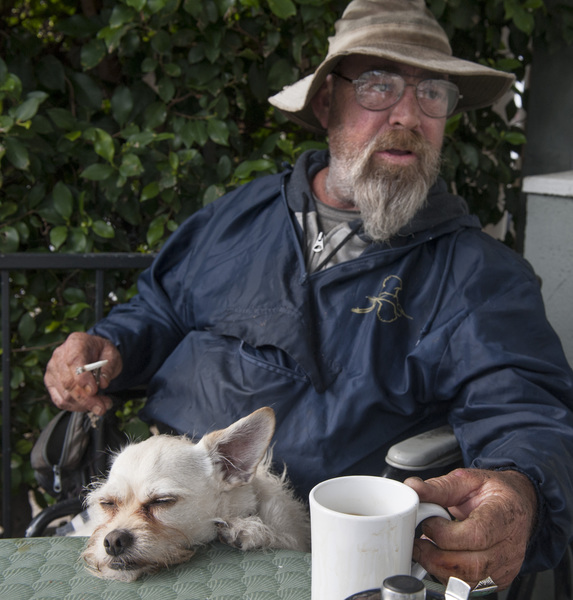 Blackburn tuned his portable radio to an easy listening station. Doolie, a scruffy white terrier mix, cuddled on Blackburn's lap as he scooted his wheelchair in place. Yaghoubi, 51, arrived with cups of his specialty brew.