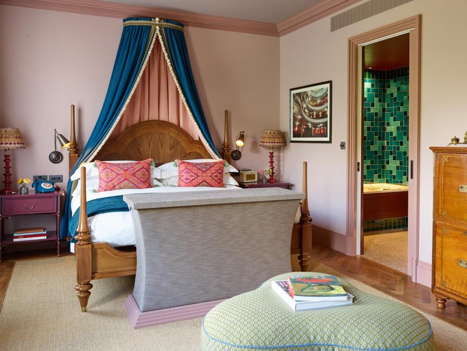 The magnificent open plan suites unashamedly embrace their theatrical namesake with dramatic displays of plush velvet adorned beds, gloriously whimsical lighting, sumptuous furnishings, and delightful original features. Generous bathroom stars glossy tiles and beautiful finish the exceptional and unique accommodations brimming with historic playhouse charm. The largest suite at Beaverbrook Town House is The Garrick which is inspired by the beautifully ornate and elegant Garrick Theatre, one of the finest remaining working examples of an authentic Victorian theatre in London’s glittering theatreland.