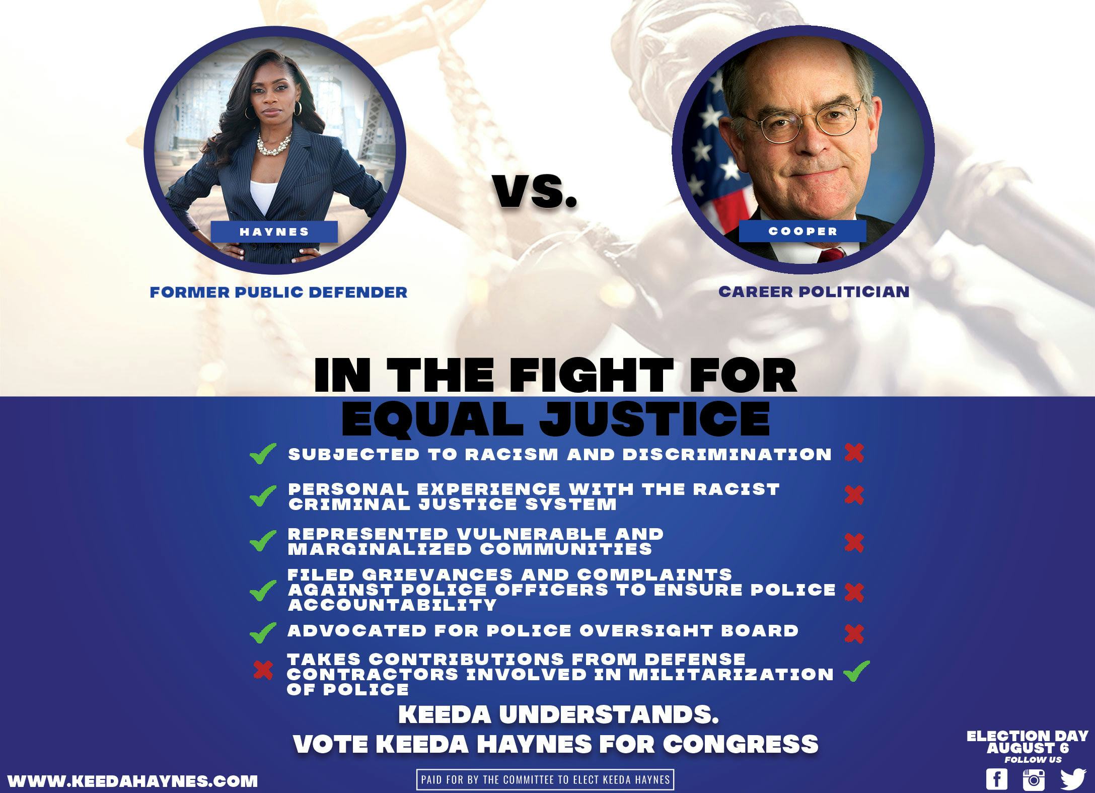 A felony curtails involvement in civic life, too. Keeda Haynes, a former public defender who served nearly four years in federal prison in 2006, is currently running for Congress in Nashville, Tennessee. But she could not run for local office or even sit on a jury until she petitioned a court to restore her civil rights — a legal process that can be difficult to navigate. “This is an opportunity to change the narrative and have tough, hard conversations around barriers to re-entry,” she said of her campaign. In a recent mailer comparing her record on racial justice to her opponent’s, Haynes noted her “personal experience with the racist criminal justice system.”