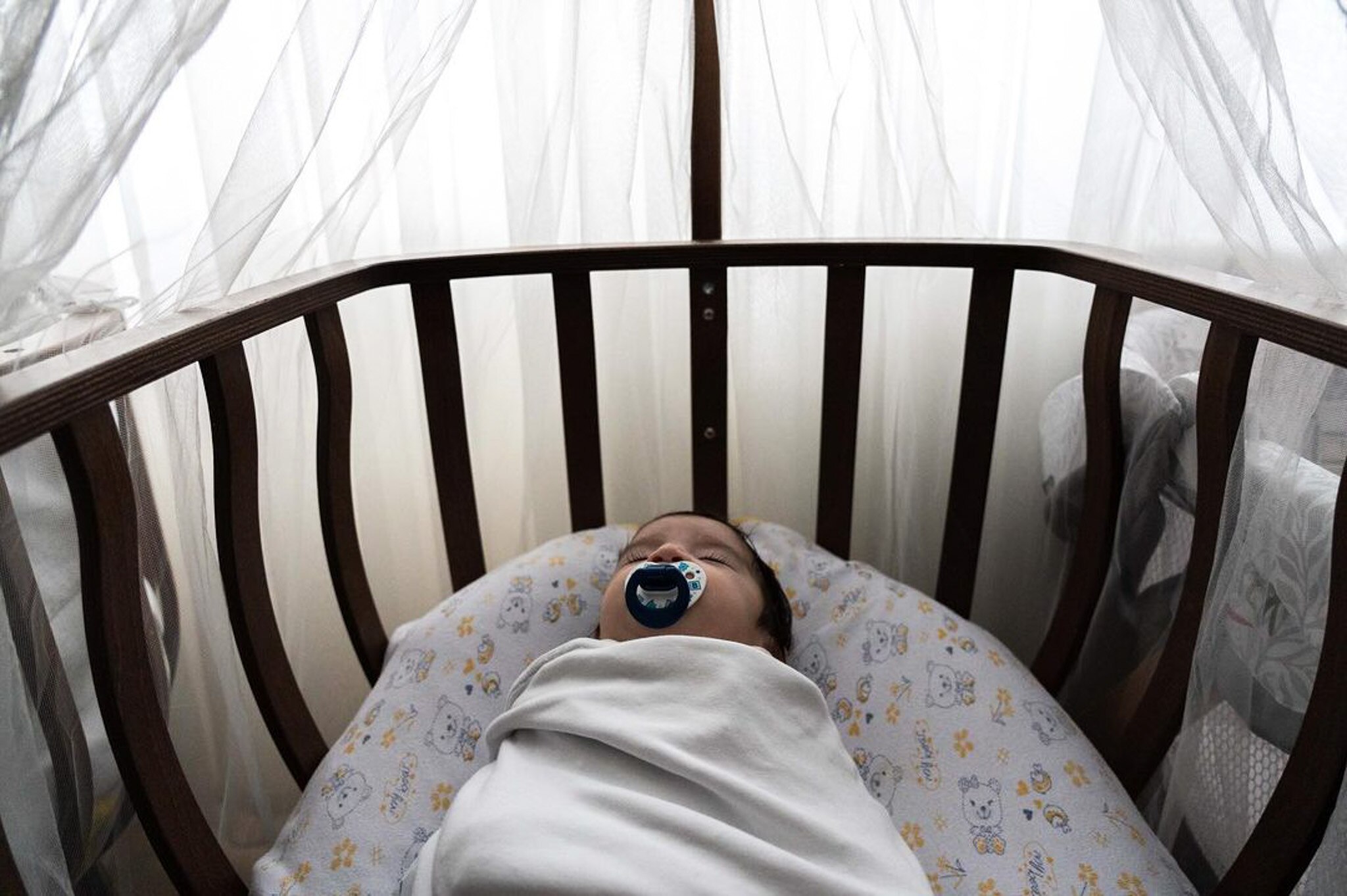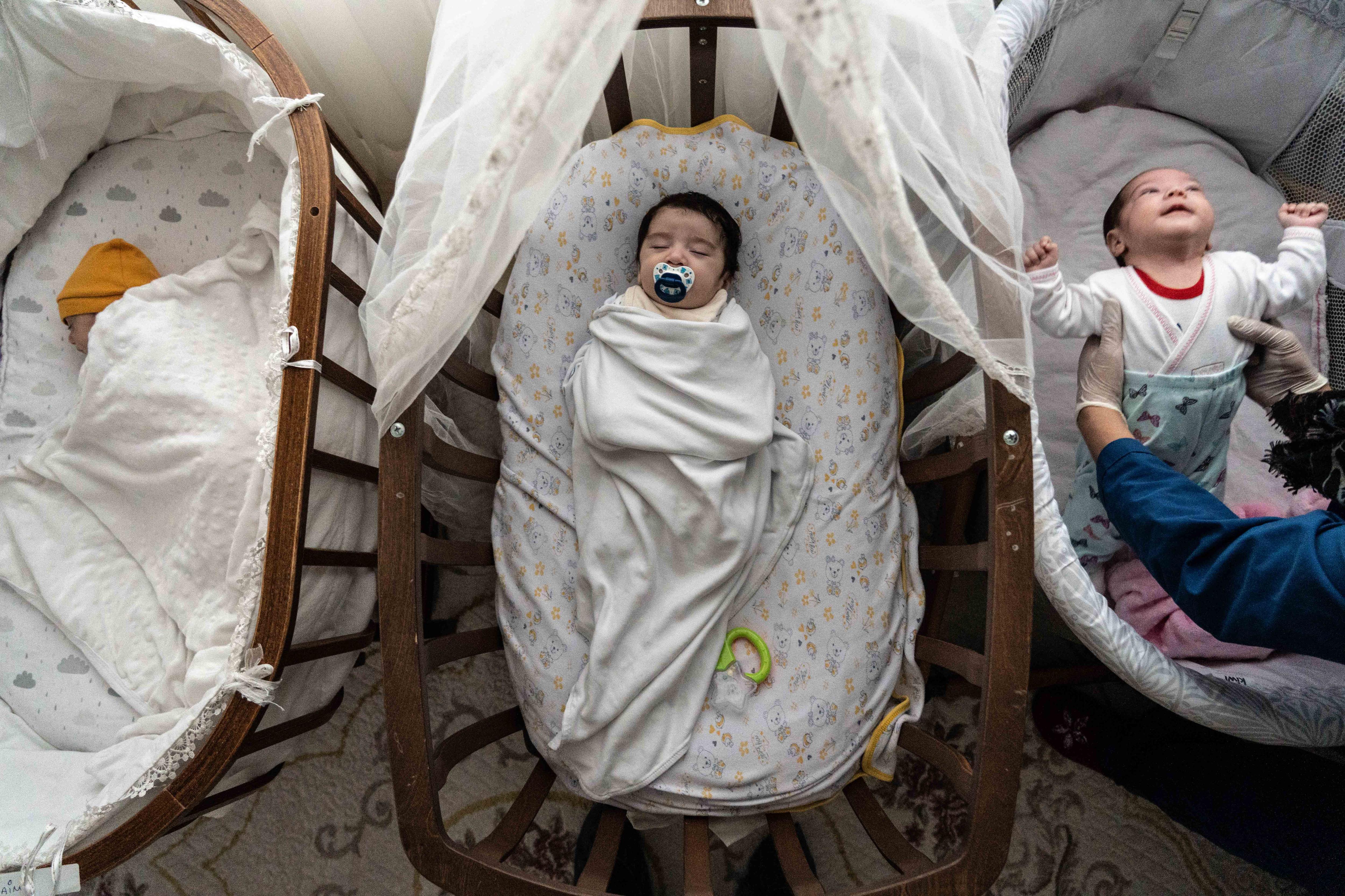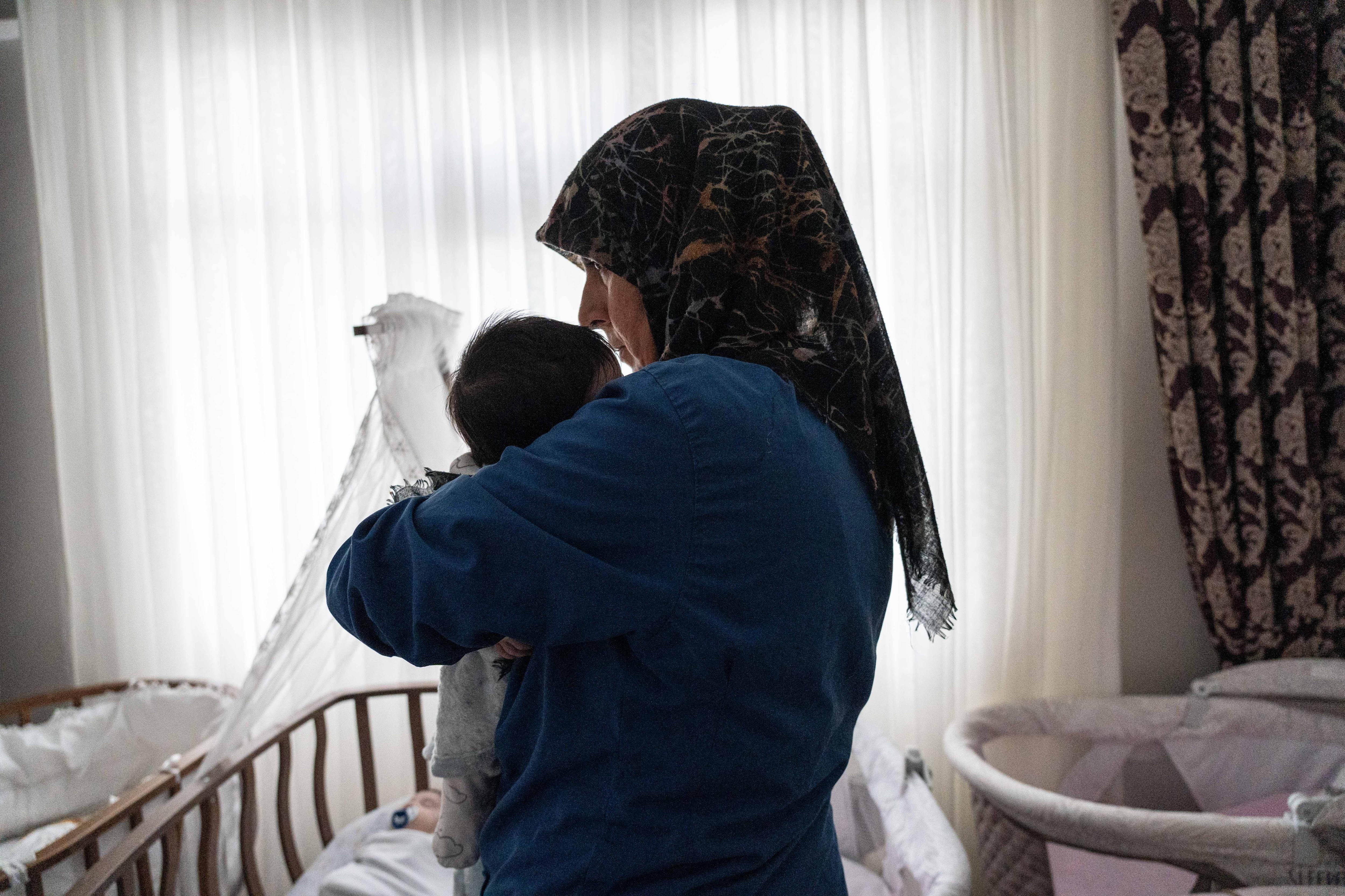 Each evening, two nannies, Meral Demirkiran and Gönül Çapuk, work their way through the nursery, scooping up each infant and cooing, while feeding them from a bottle.