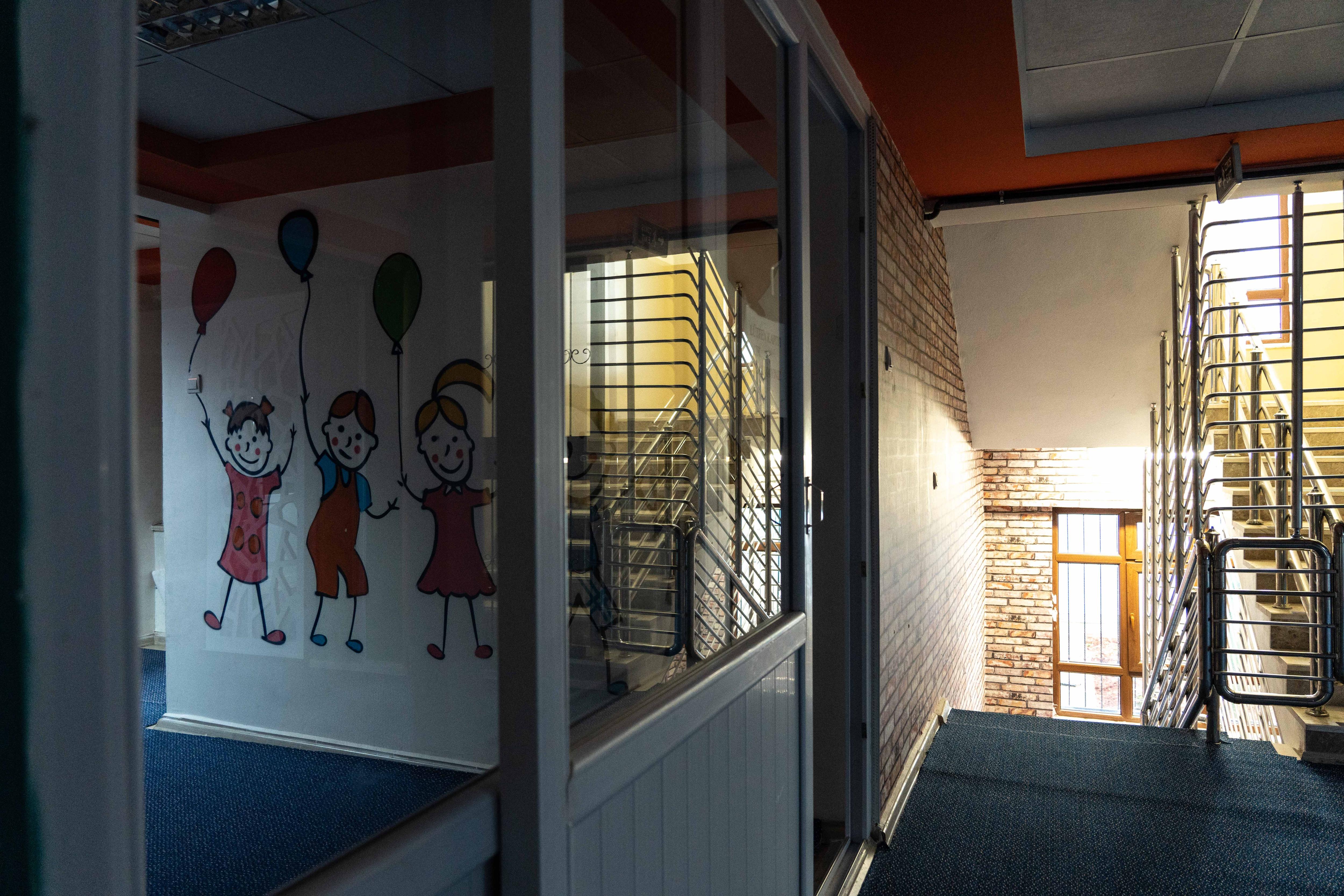 The orphanage, a squat concrete block on a main road next to a dental hospital, was once a private drug rehab clinic. Metal grills line the stairwell like bars on a jail cell.