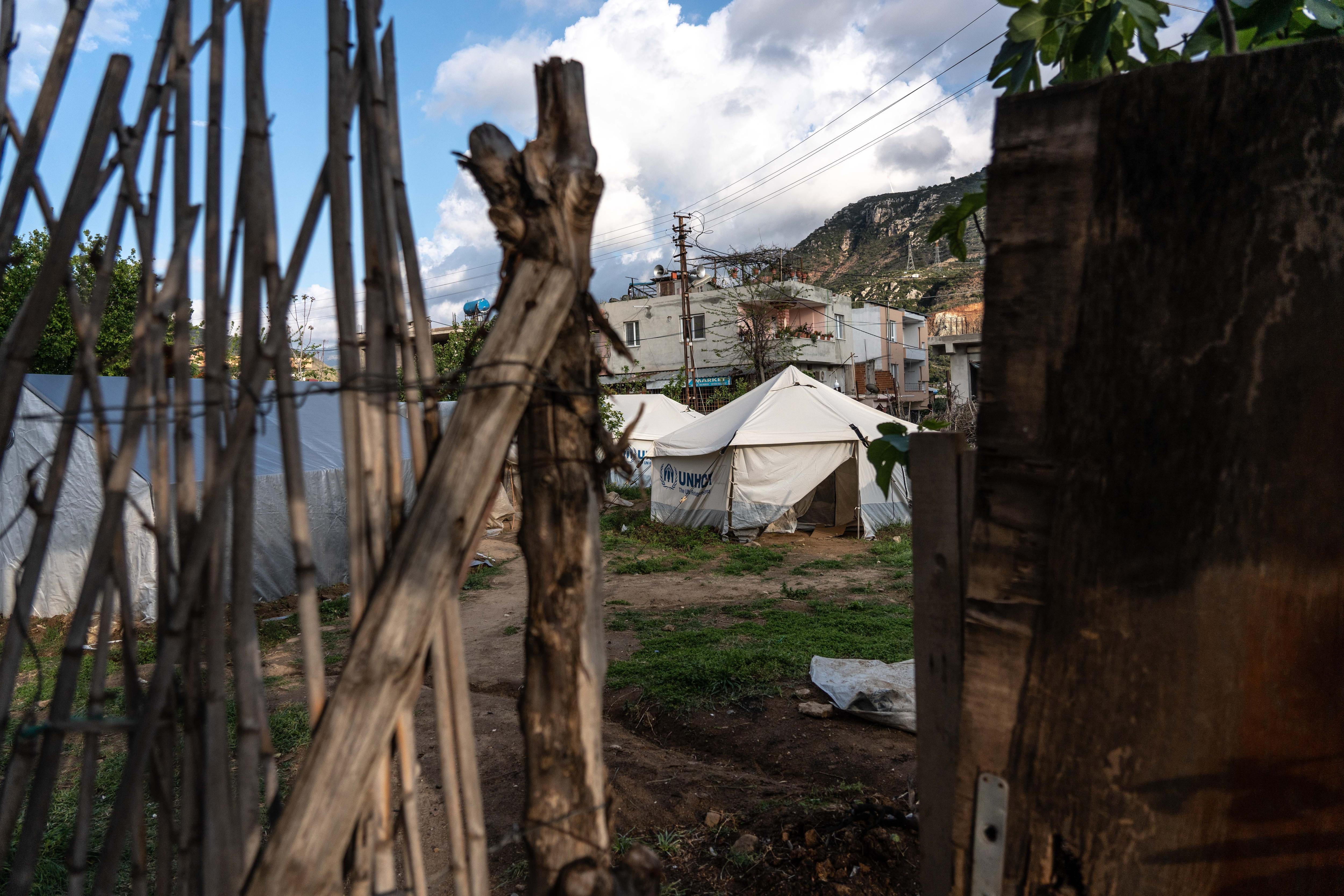 In the village of Sutaşı, nestled in the foothills of the Nur mountains on the Mediterranean coast, nearly 100 people have moved into a handful of tents set up in a front yard along a main street.