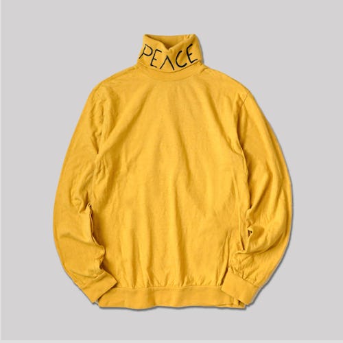 Brighten up your day with bright yellow and a humble message of peace through this upgraded long-sleeve tee from one of Japan’s premiere cult-favorite brands.