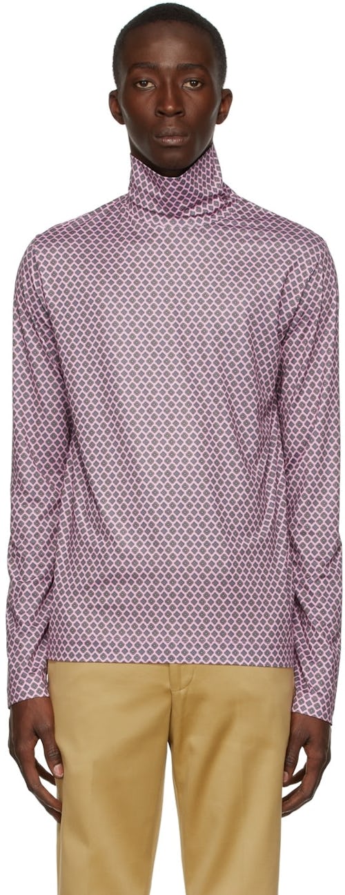 Rocking a turtleneck is already going to bring attention your way, but you can lean all the way into the effect with this dazzling pink pattern on satin with stretch.