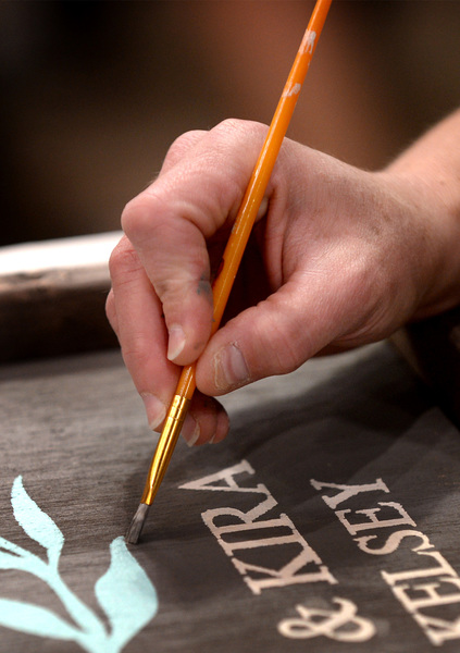 Wood and canvas projects remain their most popular, and they're constantly expanding and refining their choices for customers. At a wedding show last month, they showcased signs and wood products for farmhouse-style weddings and items that can be given as gifts � giant signs to put over a couple's bed, customized with a lyric to their wedding song, for example.