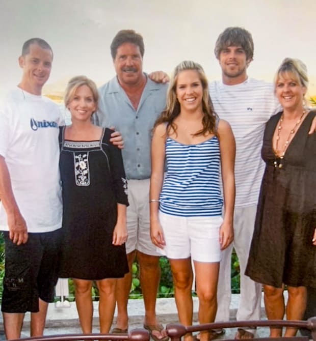 Bentley says she misses Uncle Colty. Everyone visited him the other day at Pacific View Memorial Park, in Corona Del Mar, where the family buried some of his ashes, next to Papa’s. They spread some more in the ocean off the shore in front of a family beach house an hour south in Oceanside, and the rest sit in a box in a shrine on a shelf in the Brennans’ foyer, waiting to be scattered in the waves off Oahu in the spring.
