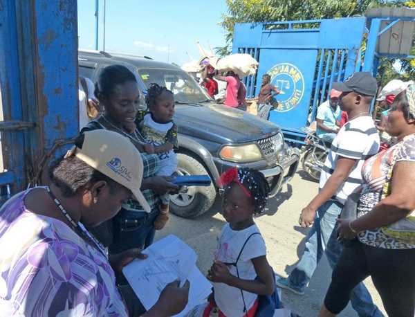 On a recent market day, IOM and IBESR child protection workers stood on the bridge looking for children coming across without their parents, and those illegally headed toward Dajabon in the Dominican Republic.
