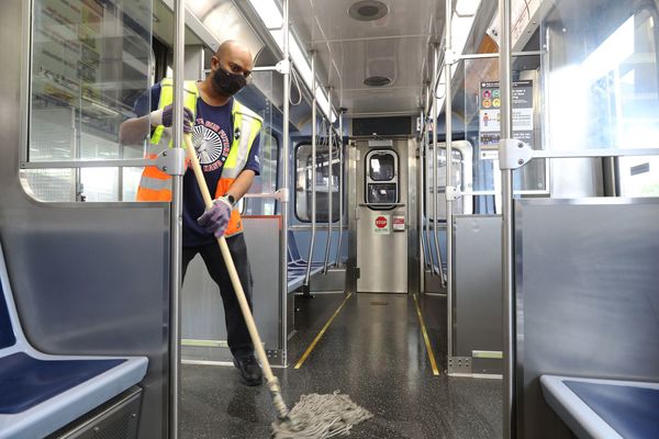 Hill returned to work mid-August because he needed the paycheck. Armed with gloves, a mask and hand sanitizer, he disinfects train cars at the 95th Street Red Line station on the South Side, which is still largely devoid of commuters.