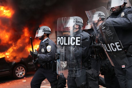 Hundreds of people took to the streets on 20 January 2017; a small group broke away from demonstrations and busted store windows and set a parked limousine on fire. Footage of thick clouds of tear gas, smashed windows, graffiti, property damage and black-clad protesters dominated news coverage.