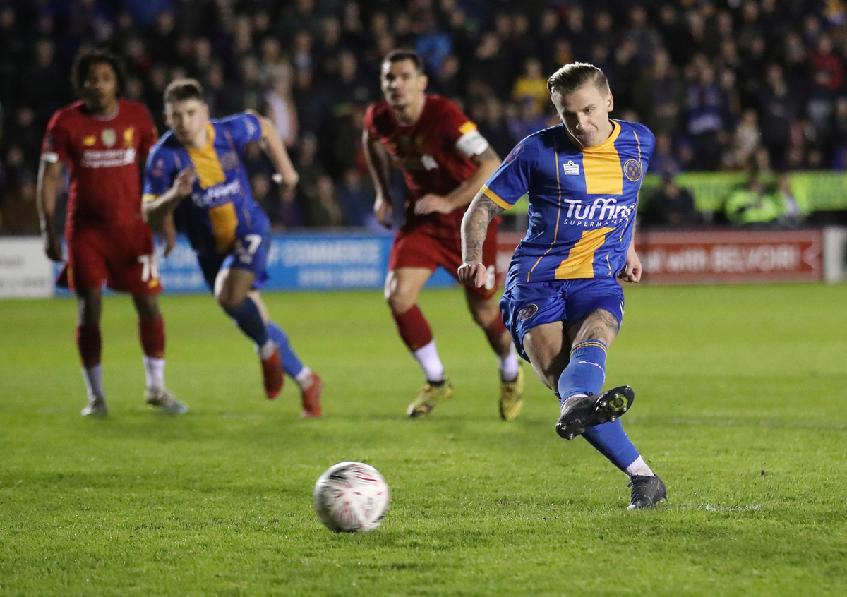 The Shrews, 59 places below runaway Premier League leaders Liverpool, faced a seemingly impossible task when Donald Love's own goal 28 seconds after halftime put Juergen Klopp's much-changed side 2-0 up after Curtis Jones had opened the scoring.