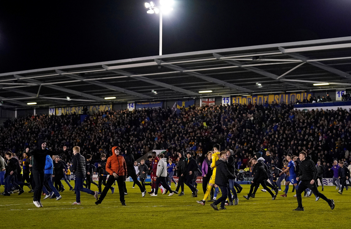 The final whistle provoked a good-natured pitch invasion as Shrewsbury's ecstatic fans celebrated their side's best Cup result since beating Everton in the 2002-03 season.