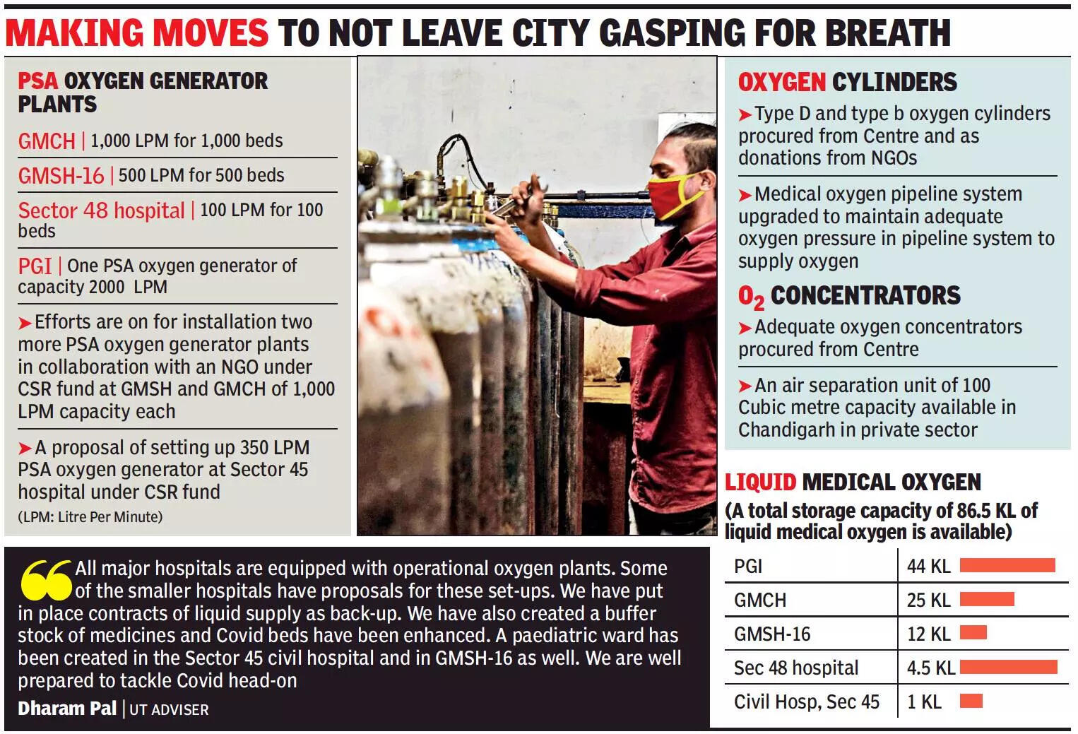 A senior UT official said although they have sufficient arrangements of oxygen supply, they are looking for additional arrangements. The health department is adequately prepared with medical oxygen supply, he claimed.