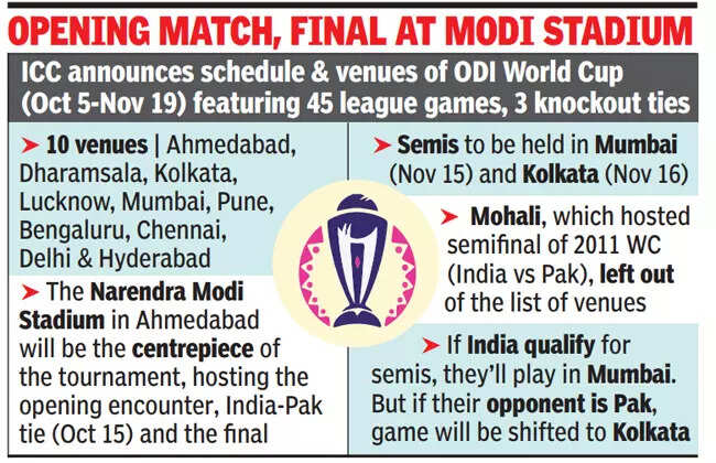 According to the tentative warm-up schedule prepared by ICC, TOI has reliably learnt that India will play its last warm-up game in Thiruvananthapuram against one of the qualifiers on October 3, five days before their World Cup opener in Chennai against Australia.