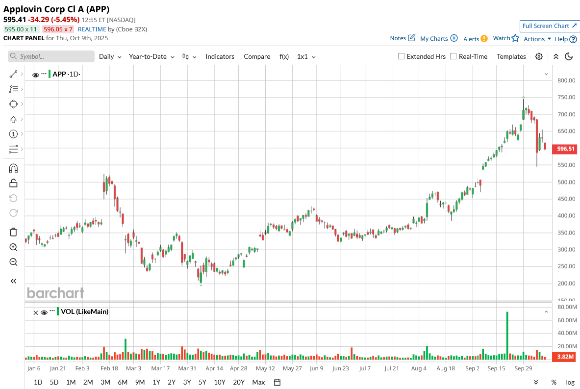 AppLovin (APP) has become one of Wall Street’s favorite growth stories in 2025—and for good reason. Once known primarily as a mobile gaming ad platform, the company has rapidly evolved into an AI-powered advertising technology powerhouse, delivering staggering revenue and profit growth that’s left analysts scrambling to raise their targets. The stock has nearly doubled this year, joining the S&P 500 ($SPX) and emerging as one of the standout performers in the broader tech rally.