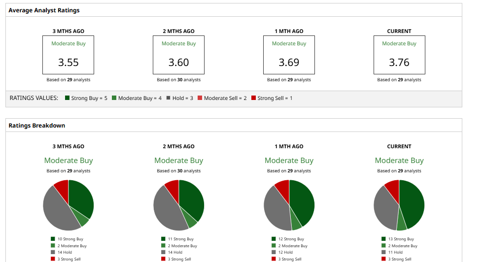 Overall, analysts maintain a moderately bullish stance. Of 29 analysts covering the stock, the consensus rating stands at “Moderate Buy,” with an average 12-month price target of $61.85, suggesting roughly 7% potential upside from current levels.