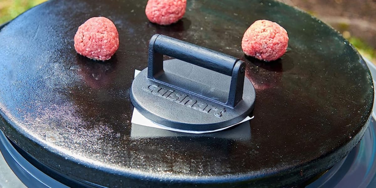 Most things taste better when you don’t have to make them yourself, but have you ever wondered why hamburgers at restaurants are so much better than the versions you grill up at home? The secret might not be just in the seasoning, but also in the tools your favorite burger joints use to make it. Over 26,000 Amazon shoppers—including a restaurant owner—swear by this $20 Cuisinart Cast Iron Burger Press to flatten patties and give them a crispy exterior with a juicy interior.