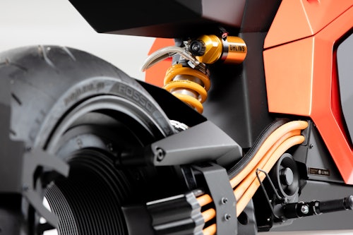 Finland’s Verge Motorcycles has dropped a huge selection of pictures of its forthcoming, angular, fully-electric TS two-wheeler ahead of its imminent production. The first thing anyone’s likely to notice? The Tron-like, hubless rear wheel. Even more impressive than the wheel’s appearance is that it houses an 80 kW integrated rim motor that produces 1000 Nm of torque.