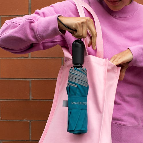 I had the chance to try out Weatherman’s Travel model, which the brand claims had a waitlist of 15,000 people until it was recently restocked. It's just 11 inches long when closed, has a 38-inch diameter for coverage, and weighs in at less than a pound. These dimensions make it perfect for tossing in your bag without taking up too much space, but it’s no cupcake when it’s time to be put to work.