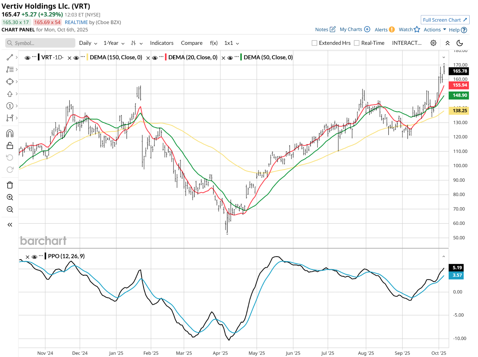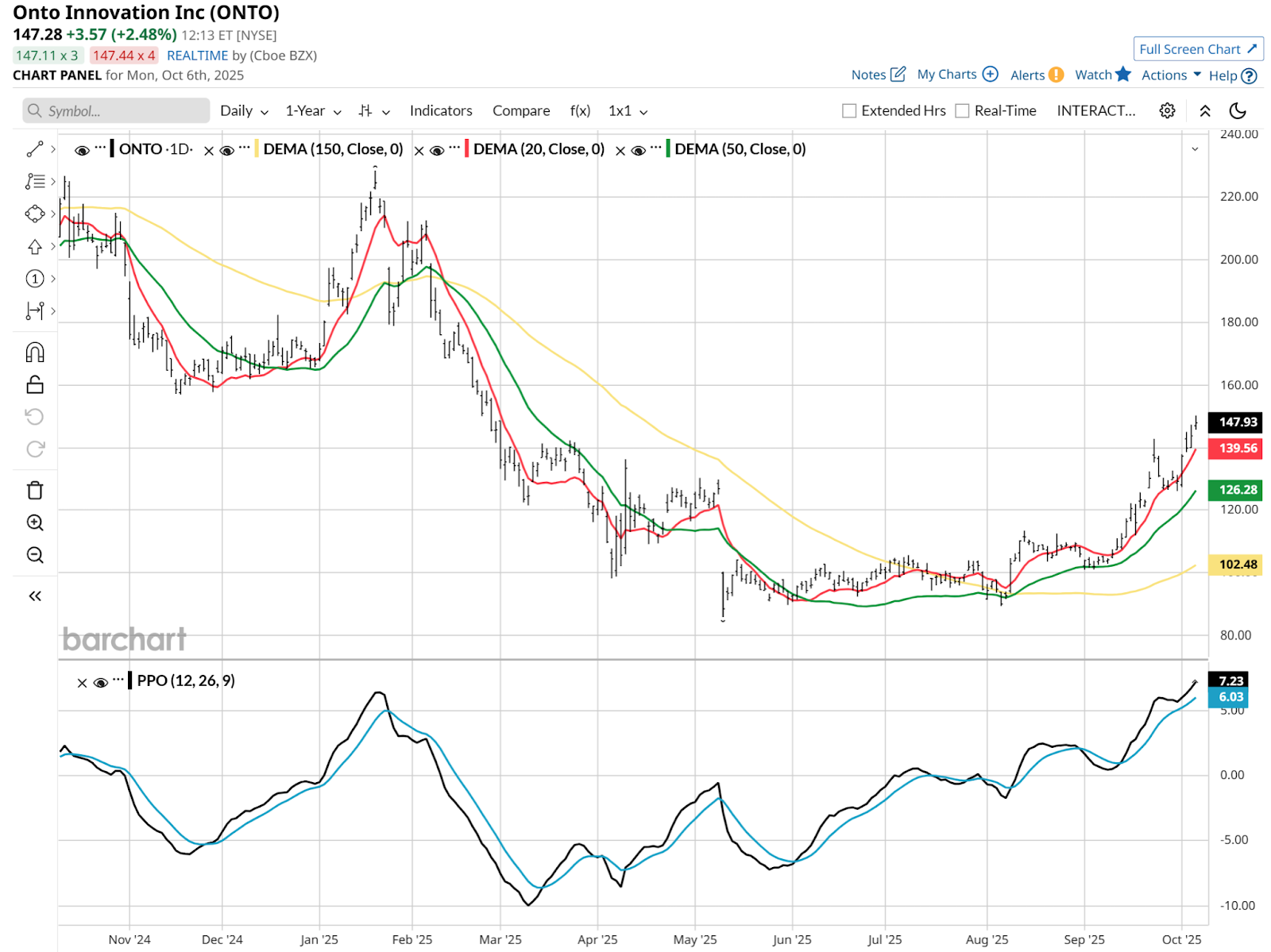And finally, late to the party, here’s a chart of Onto Innovation (ONTO). This looks like it has some big potential follow-through here, although the Percentage Price Oscillator (PPO) indicator at bottom is currently in flux.