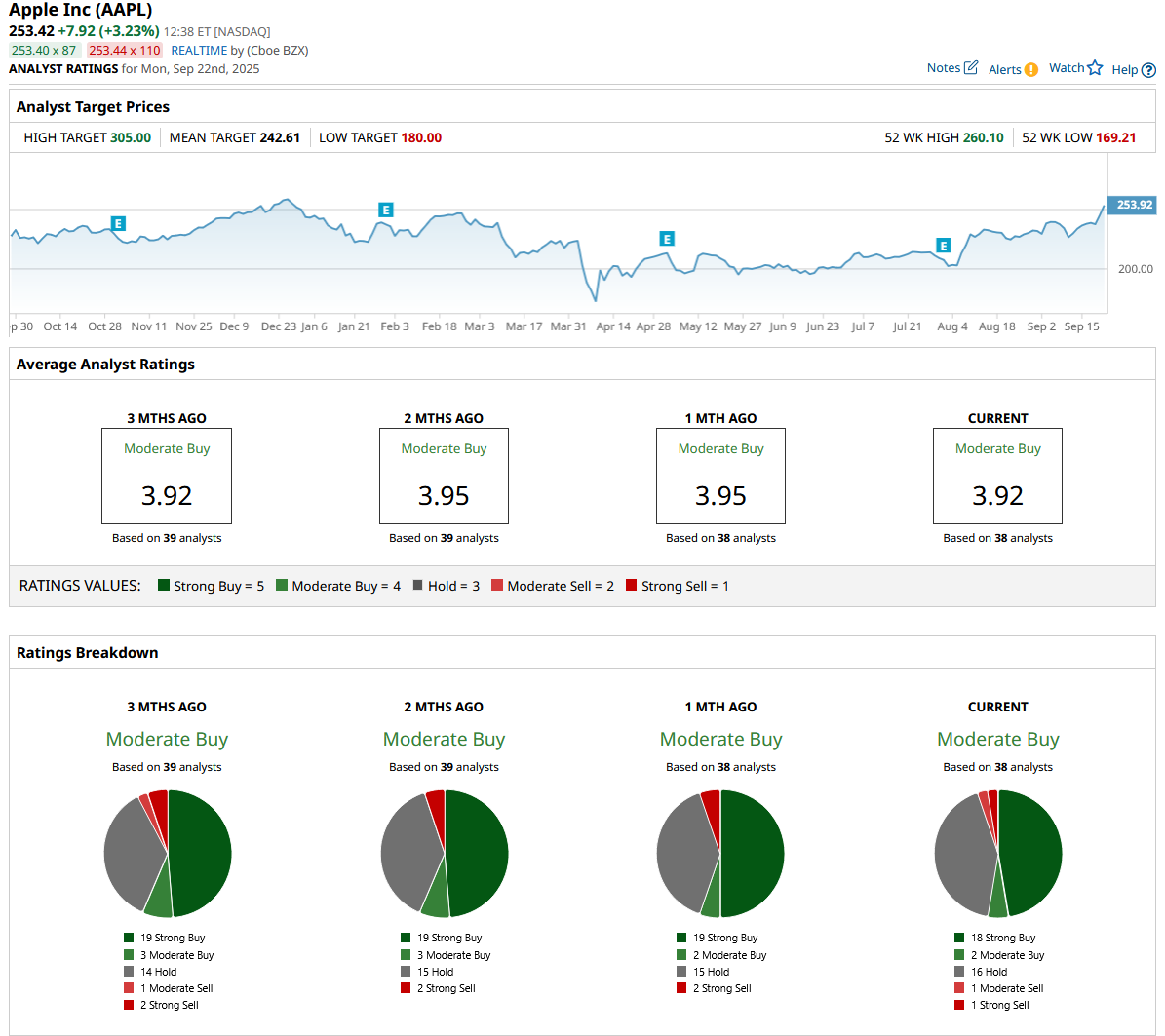 It should be no surprise to most investors who have followed Apple closely lately that Wall Street analysts remain bullish on the company's stock. Currently, the consensus price target for AAPL stock sits at $305 per share, implying upside of around 25% from here.