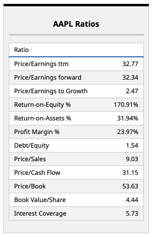 That said, most investors are right to point out that growth has slowed dramatically for Apple recently. Below, I highlight the company's key valuation metrics. In sum, Apple is an expensive big-name stock given its price/sales and price/earnings multiples, both of which are near historical highs for the company looking back a decade or so.