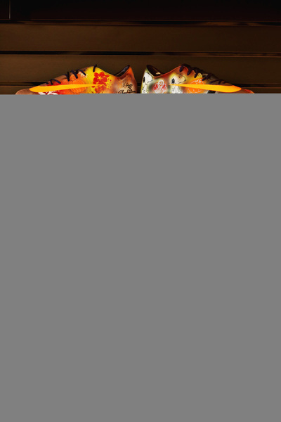 But Phillips' masterpiece is his heat-sensitive design. Indoors, a pair of shoes is one color, but as soon as the wearer walks outdoors, the shoes immediately change colors. Heat is the catalyst causing the change. Douse the shoes in cold water and they return to their original shade.