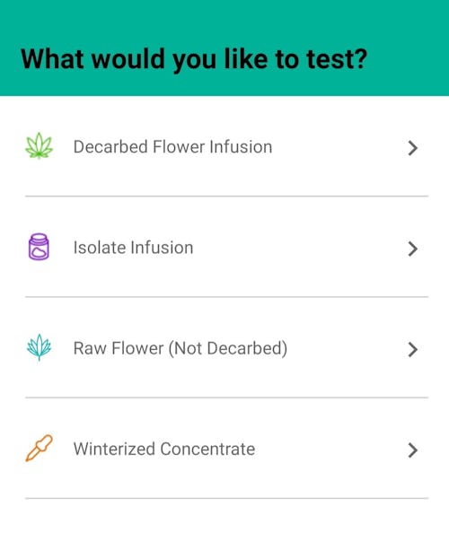 When you’re ready to test the product, gather all your materials and hit the “Run Test” button in the app. From there, you just have to pair your device and follow the prompts. Are you testing weed-infused coconut oil? There’s a button for that. A solid concentrate? There’s a button for that too, plus instructions on how to prep it for testing. From the moment you begin the test sequence and pair your phone, there are clearly delivered instructions telling you what to do next.