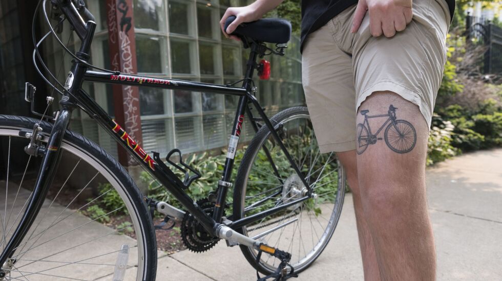 His mind flashed back to family rides growing up in Northbrook, bonding with his sister and parents as they rode matching Trek MultiTrack 720s. That “weird heirloom” soon became the escape he longed for — and an object with enough meaning to immortalize with a tattoo.