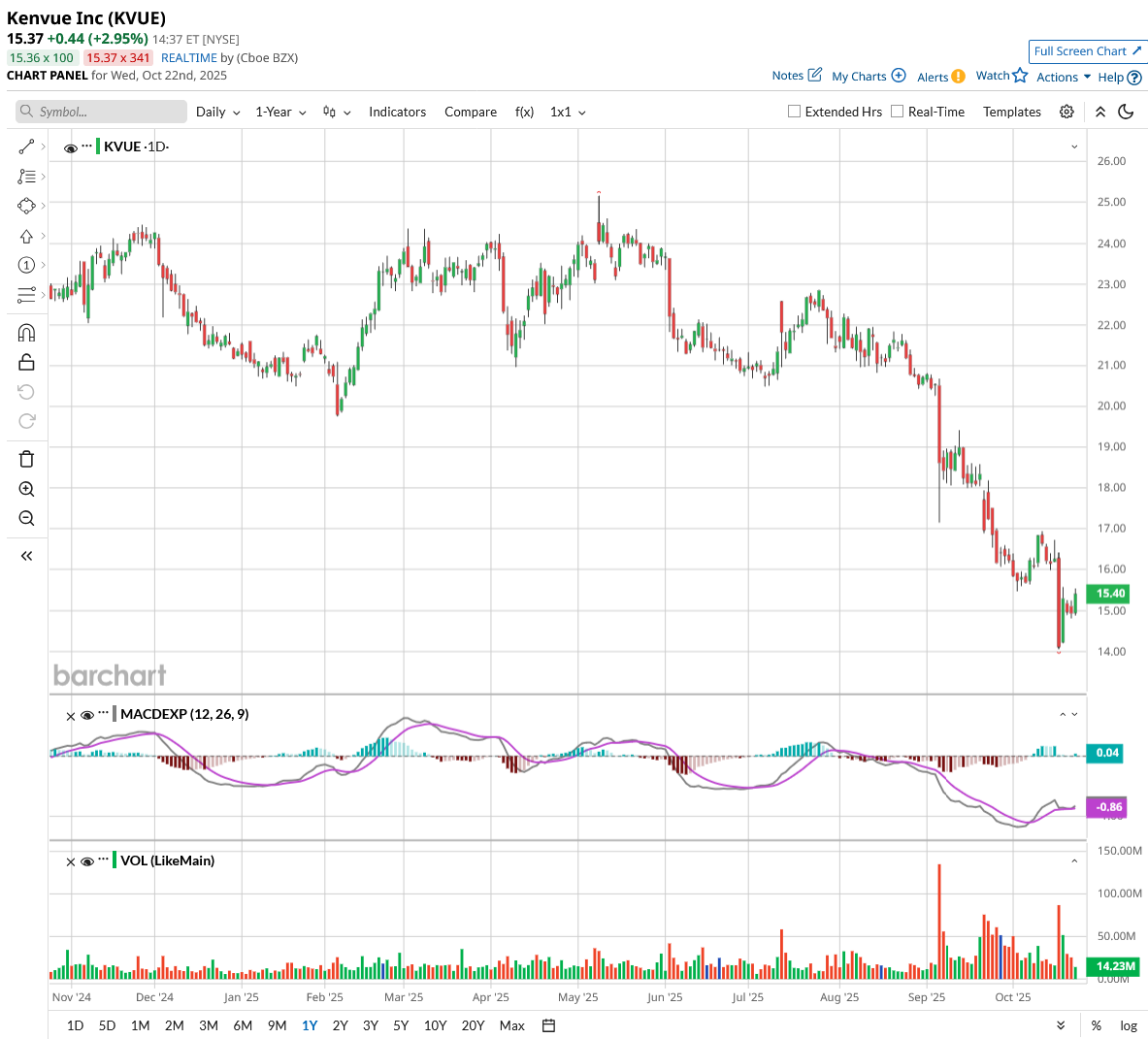 KVUE stock's recent troubles center on the Trump administration's controversial and scientifically questionable position linking Tylenol to autism when used during pregnancy. Shares dropped over 10% after reports that Health and Human Services Secretary Robert F. Kennedy Jr. plans to release findings drawing that connection. Kennedy has pledged to determine the cause of rising autism rates and eliminate exposures.