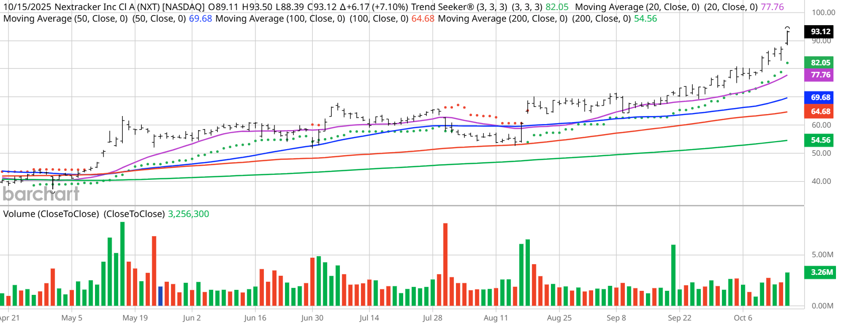 Nextracker hit an all-time high of $93.90 in morning trading on Oct. 16.
