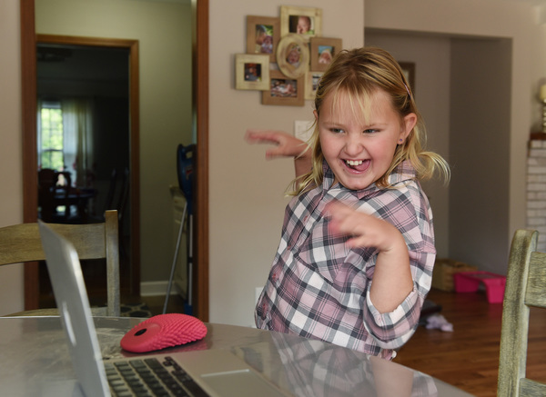 Isabelle struggles with fine motor skills, which affects her ability to use online materials for virtual learning, said her mother, Julia Dapkus.