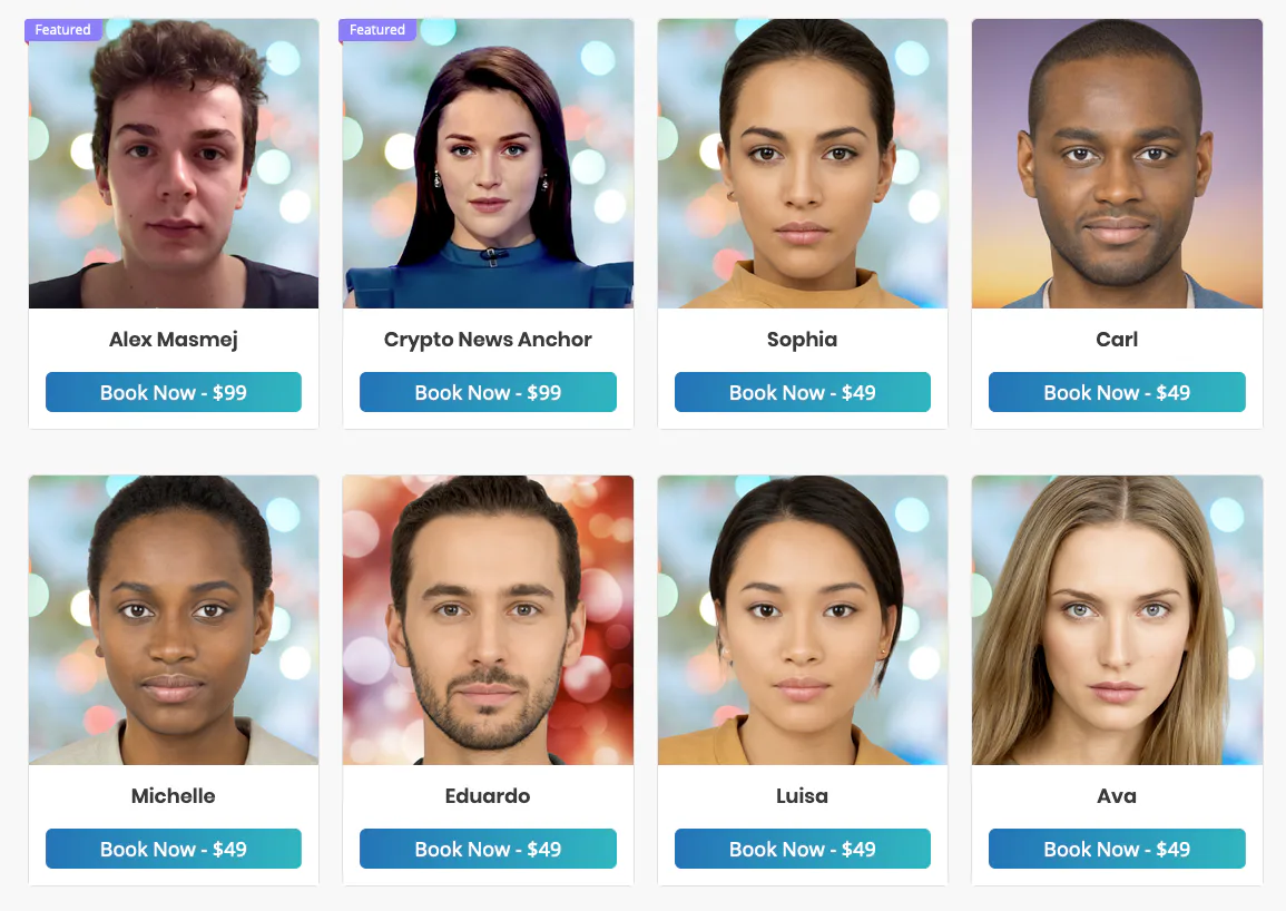 A new digital marketplace for "tokenized," AI-generated, photorealistic talking heads called Alethea (a female name that derives from the Greek for "truth") is offering anyone willing to pay the ability to put words in a synthetic human’s mouth. Prices for videos start at $49 and go up to $100 depending on which character you choose. For that price, you get to submit a 200-word script.