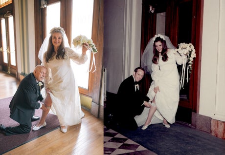 Carolyn, however, did manage to wear the same wedding dress.