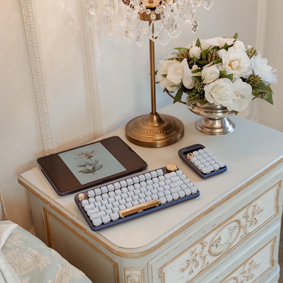 The matching wireless mouse in the Desk Set has an elegant contemporary metallic matte, gold and milky frost finishes and matches the color scheme of the keyboard and calculator. The mouse has a Pixart optical sensor and can connect via Bluetooth or RF. A 1,000mAh rechargeable battery is easily recharged using a USB-C cable and with any 5V power supply.