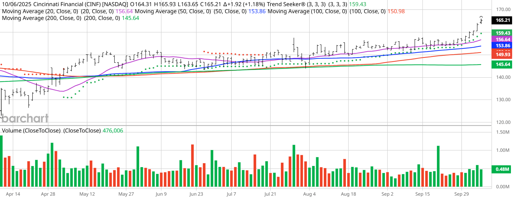 Barchart Technical Indicators for Cincinnati Financial