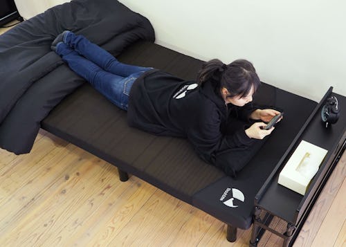 The Gaming Mattress is a mattress upon which you can game. And one you can sleep on after gaming. That’s the long and the short of it. According to Bauhutte’s website, this particular mattress is made of high-resilience urethane. It’s only a little over 3 inches thick, so we wouldn’t expect it to be all that great for a full night’s sleep, but Bauhutte says specifically that the mattress’s “slit structure with cuts” is meant to match the structure of a human body and provide a comfortable sleep.
