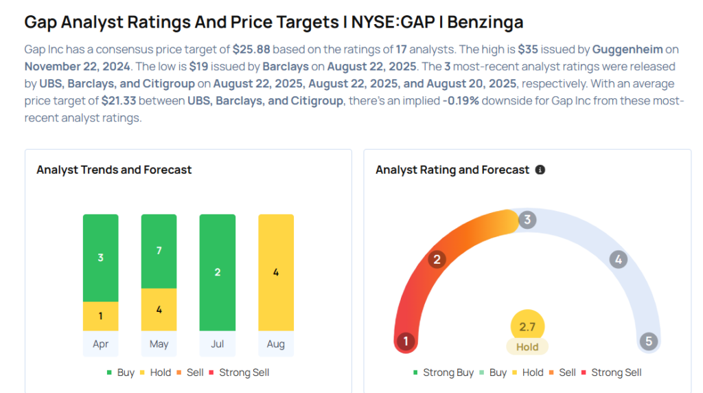 - Barclays analyst Adrienne Yih downgraded The Gap, Inc. (NYSE:GAP) from Overweight to Equal-Weight and cut the price target from $24 to $19. Gap shares closed at $21.20 on Thursday. See how other analysts view this stock.